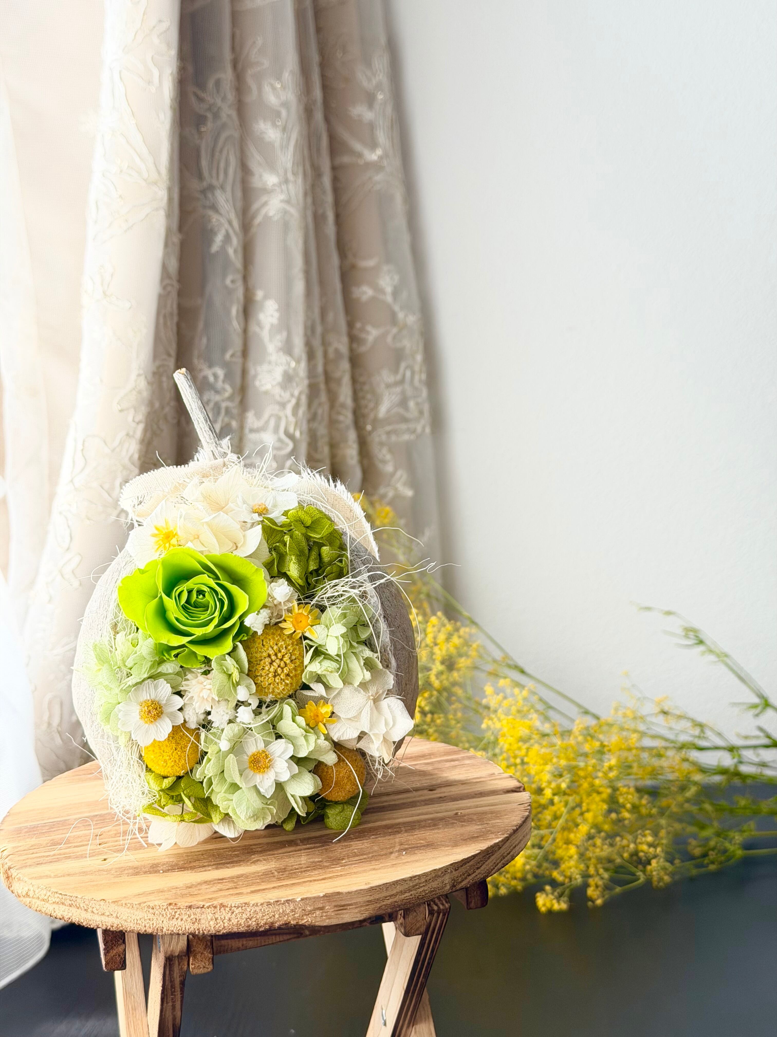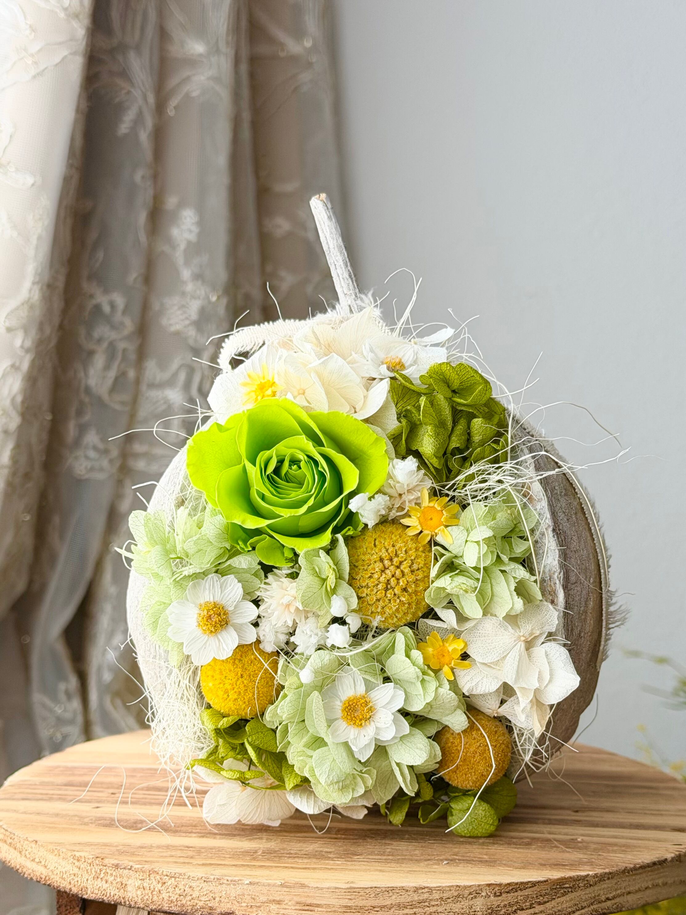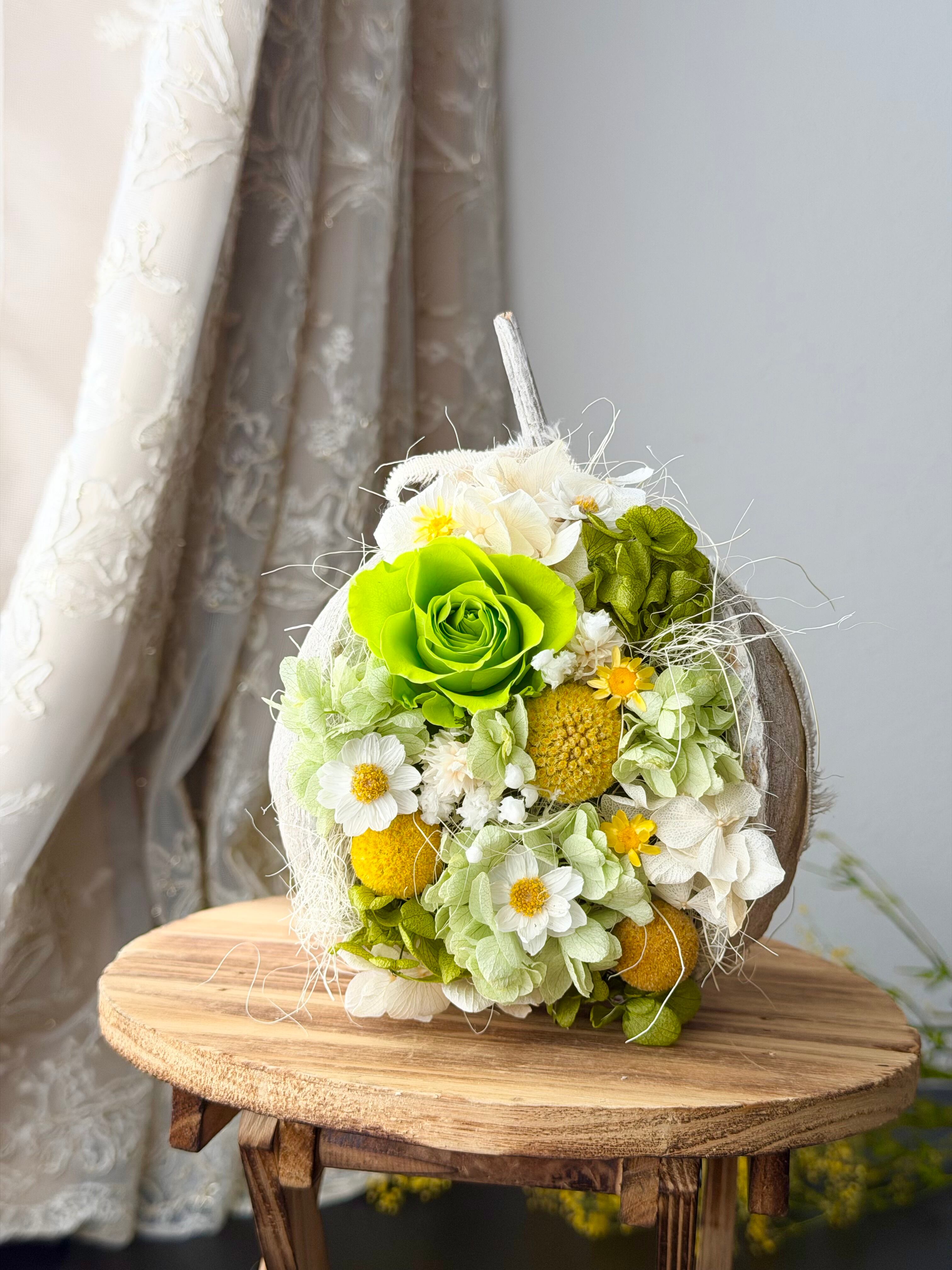 プリザーブドフラワーとドライフラワーを使用し、