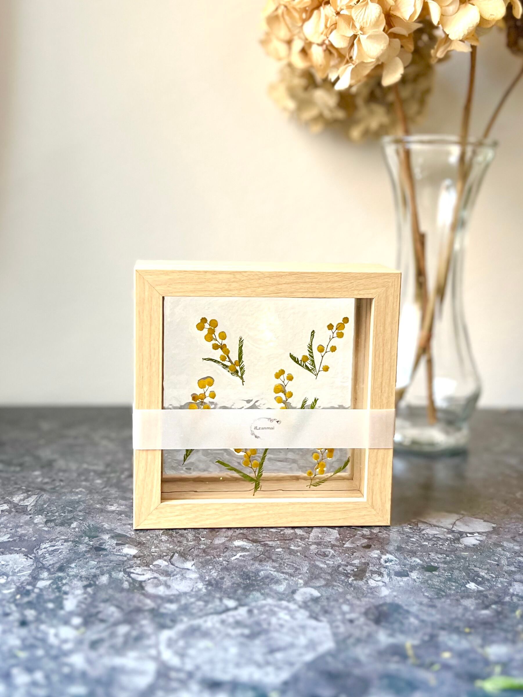 心を癒やし、幸せな気持ちにしてくれる浮かぶミモザのドライフラワー。